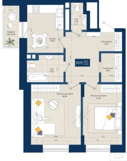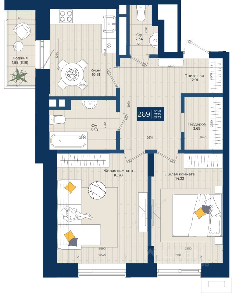 Жилой комплекс "Максат", Квартира 269 общей площадью 69,33 м2 на 4 этаже.