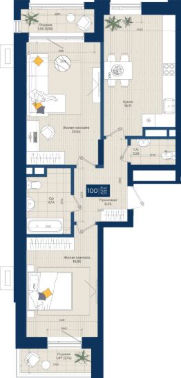 Жилой комплекс "Максат", Квартира 100 общей площадью 76,73 м2 на 3 этаже.