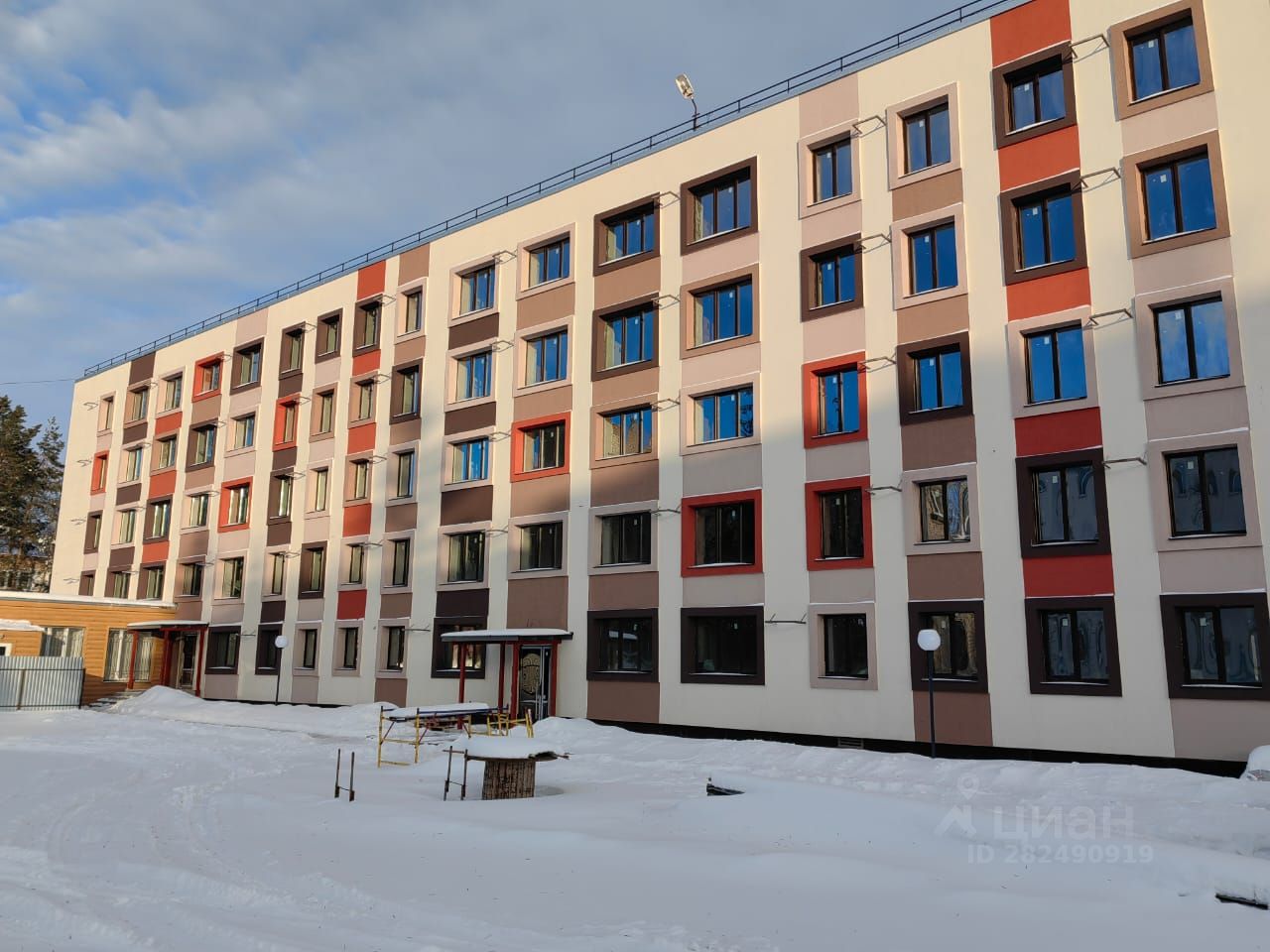 Детская площадка, фонтан.