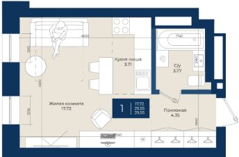Жилой комплекс "NOVA" Квартира 31 общей площадью 29,55 м2 на 5 этаже.