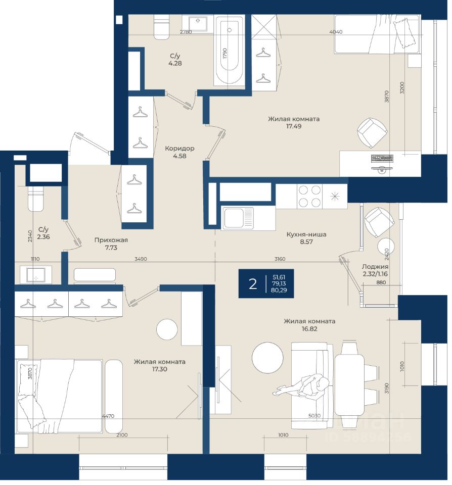 Жилой комплекс "NOVA" Квартира 36 общей площадью 80,29 м2 на 5 этаже.