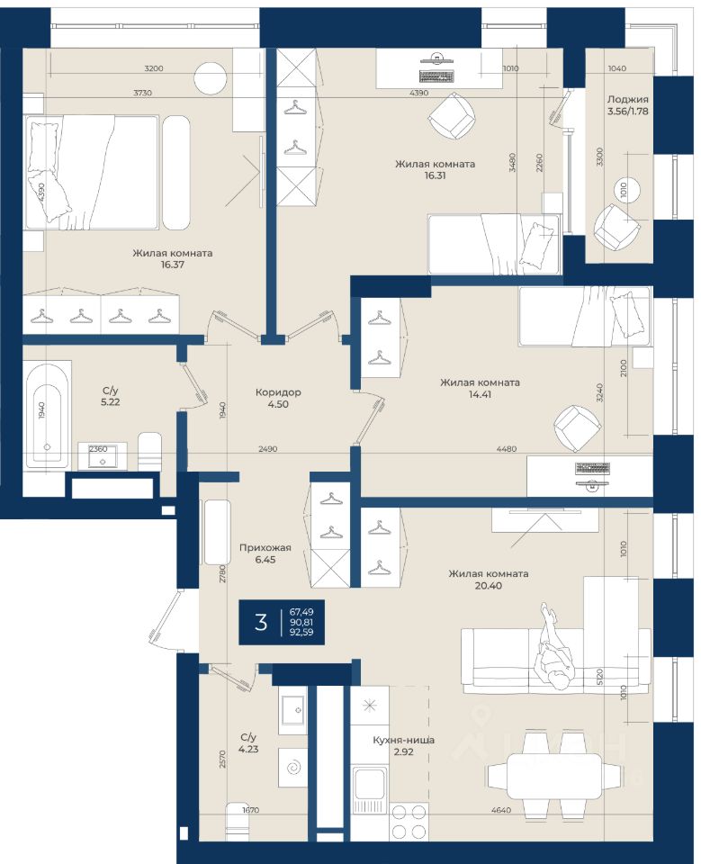 Жилой комплекс "NOVA" Квартира 35 общей площадью 92,59 м2 на 5 этаже.