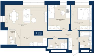 Жилой комплекс "NOVA" Квартира 72 общей площадью 76,07 м2 на 9 этаже.