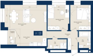 Жилой комплекс "NOVA" Квартира 102 общей площадью 76,07 м2 на 12 этаже.