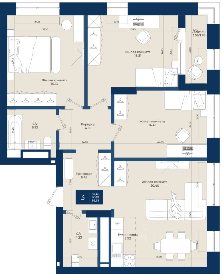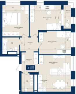 Жилой комплекс "NOVA" Квартира 115 общей площадью 92,59 м2 на 13 этаже.