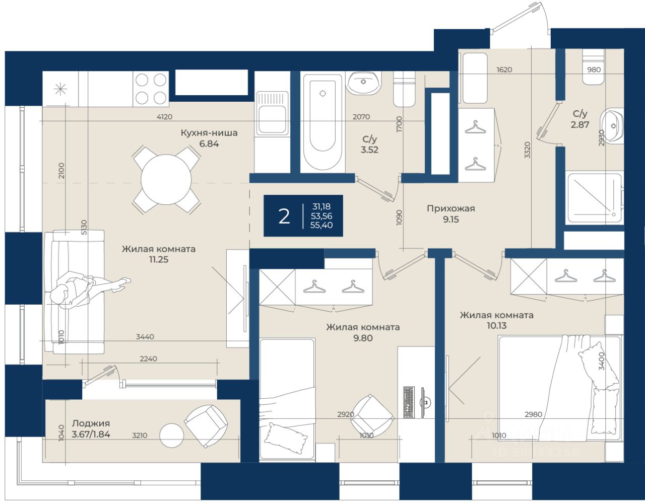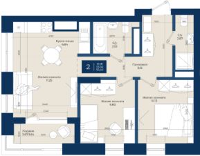 Жилой комплекс "NOVA" Квартира 134 общей площадью 55,4 м2 на 16 этаже.