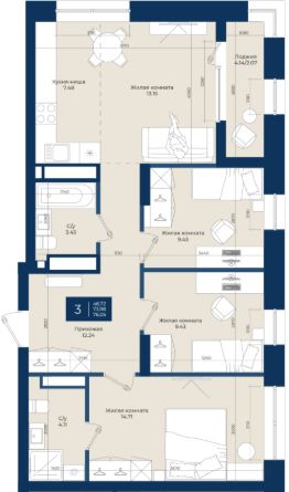 Жилой комплекс "NOVA" Квартира 182 общей площадью 76,05 м2 на 4 этаже.