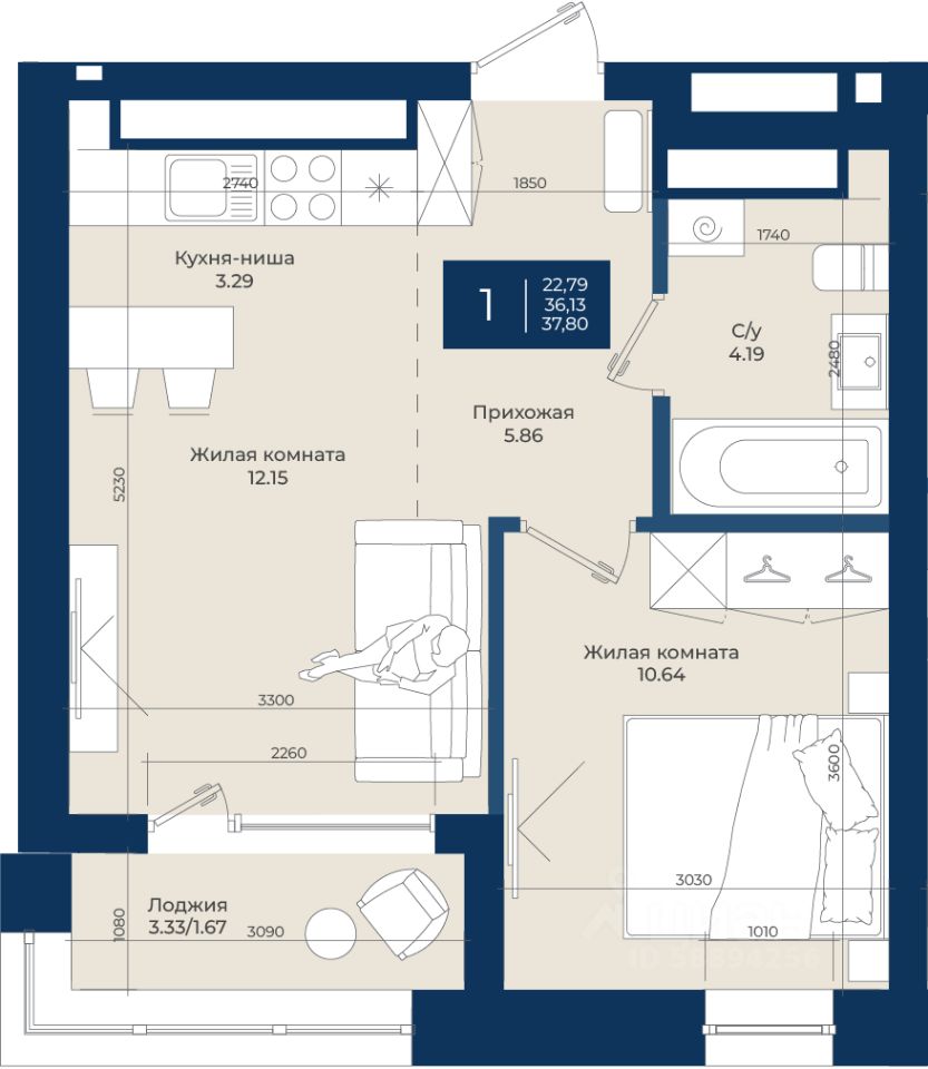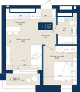 Жилой комплекс "NOVA" Квартира 194 общей площадью 37,8 м2 на 5 этаже.