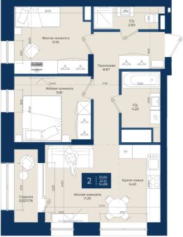 Жилой комплекс "NOVA" Квартира 197 общей площадью 54,88 м2 на 6 этаже.