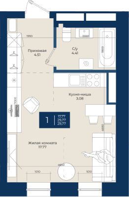 Жилой комплекс "NOVA" Квартира 235 общей площадью 29,77 м2 на 10 этаже.