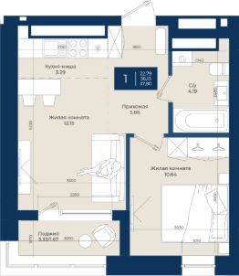 Жилой комплекс "NOVA" Квартира 264 общей площадью 37,8 м2 на 12 этаже.