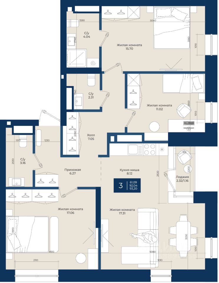 Жилой комплекс "NOVA" Квартира 269 общей площадью 93,2 м2 на 13 этаже.
