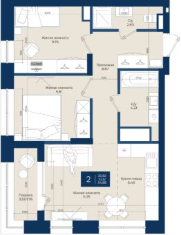 Жилой комплекс "NOVA" Квартира 273 общей площадью 54,88 м2 на 14 этаже.
