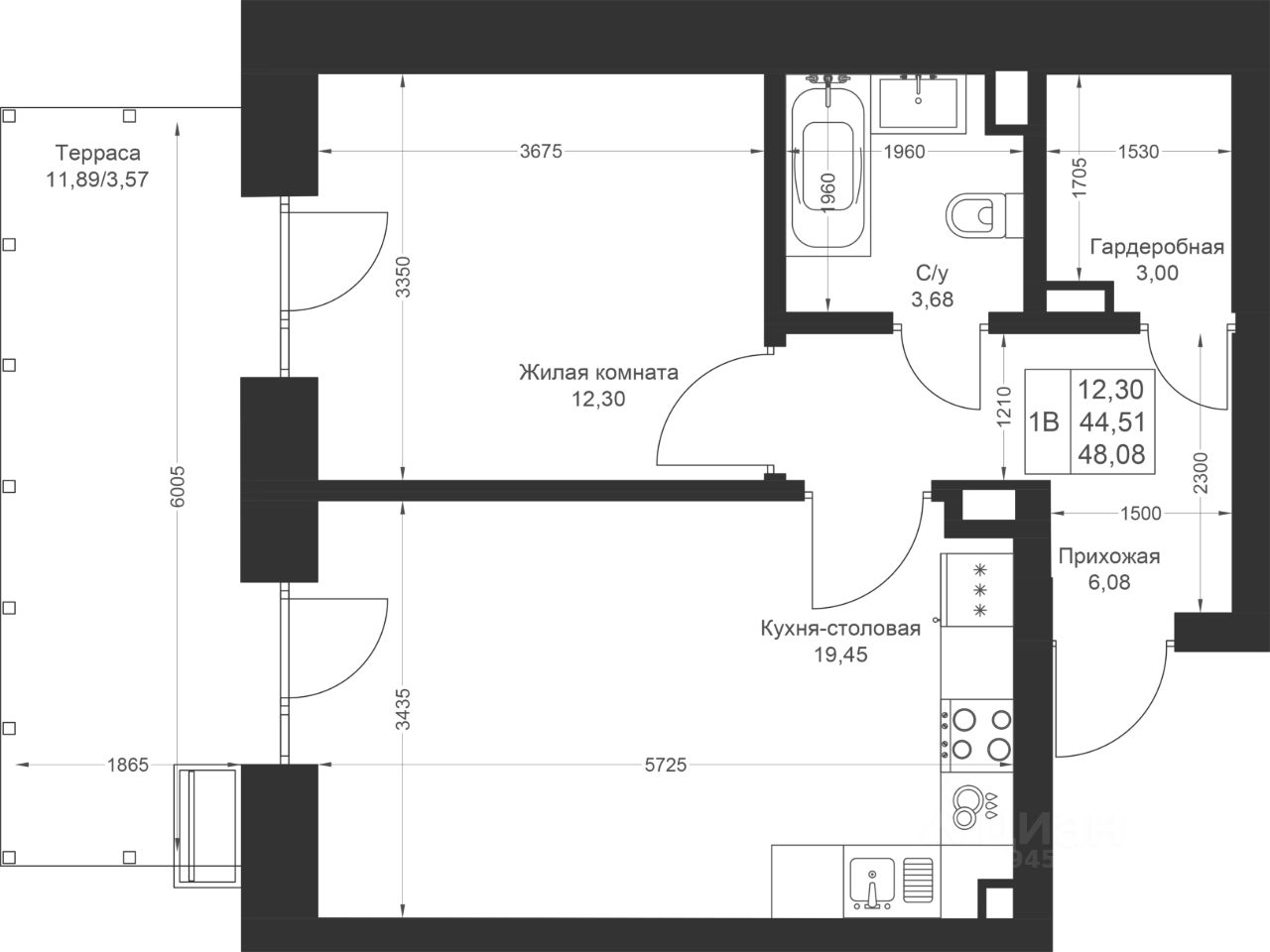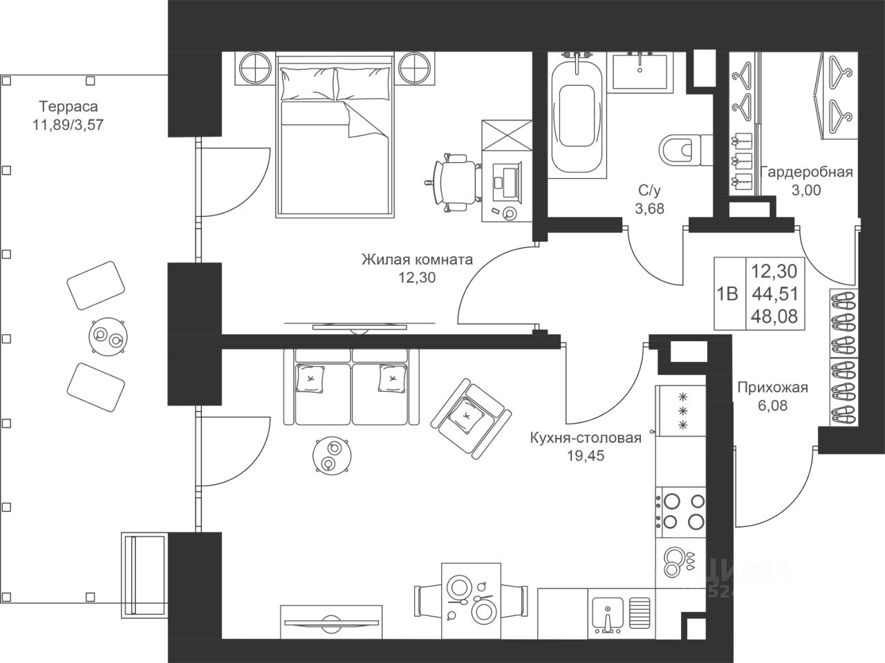 Продается 1 ЕВРО-комнатная квартира 5 площадью 48,08 кв.м на 1 этаже в строящемся доме проекта "Новый свет" компании "Ак Барс Дом".