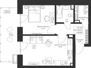 Просторная 1-комнатная квартира с кухней-гостиной, из которой организован выход на балкон. Здесь можно устраивать семейные ужины или встречи с друзьями.