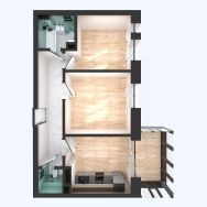 Продается 2-комнатная квартира 20 площадью 60,39 кв.м на 3 этаже в строящемся доме проекта "Новый свет" компании "Ак Барс Дом".
