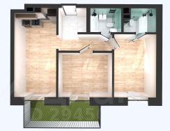 Уютная 2-комнатная квартира с кухней-гостиной и отдельной спальней. На балконе можно обустроить дополнительное место для отдыха или работы. Продуманное зонирование: кухонная зона находится в нише, чтобы скрыть рабочие процессы.