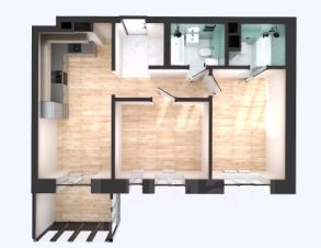 Уютная 2-комнатная квартира с кухней-гостиной и отдельной спальней. На балконе можно обустроить дополнительное место для отдыха или работы. Продуманное зонирование: кухонная зона находится в нише, чтобы скрыть рабочие процессы.