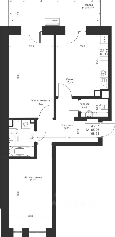 Продается 2-комнатная квартира 141 площадью 68,58 кв.м на 1 этаже в строящемся доме проекта "Новый свет" компании "Ак Барс Дом".