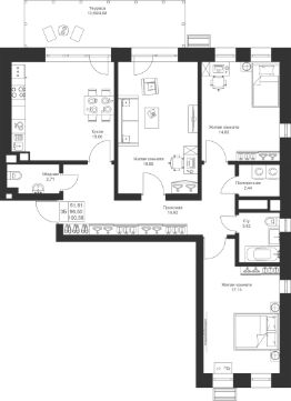 Продается 3-комнатная квартира 142 площадью 100,58 кв.м на 2 этаже в строящемся доме проекта "Новый свет" компании "Ак Барс Дом".