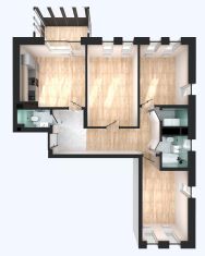 В проекте 3 комнаты для личного пространства домочадцев. Окна выходят на разные стороны дома, благодаря чему в помещениях будет больше света. В прихожей есть место для шкафа-купе, где будет удобно хранить все свои вещи.