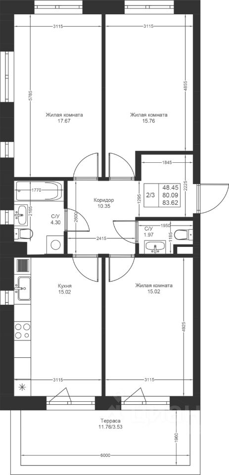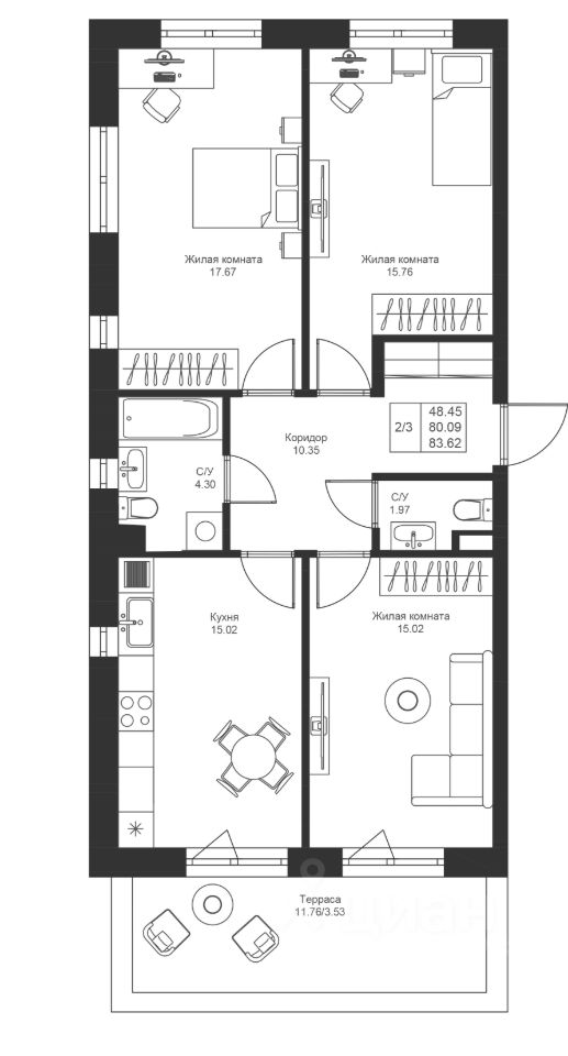 Комфортная 3-комнатная квартира с отдельной кухней и двумя санузлами. В квартире есть просторный балкон, где вы сможете организовать уютное место для отдыха.