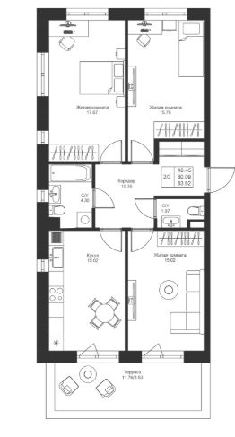 Продается 3-комнатная квартира 2 площадью 83,62 кв.м на 1 этаже в строящемся доме проекта "Новый свет" компании "Ак Барс Дом".