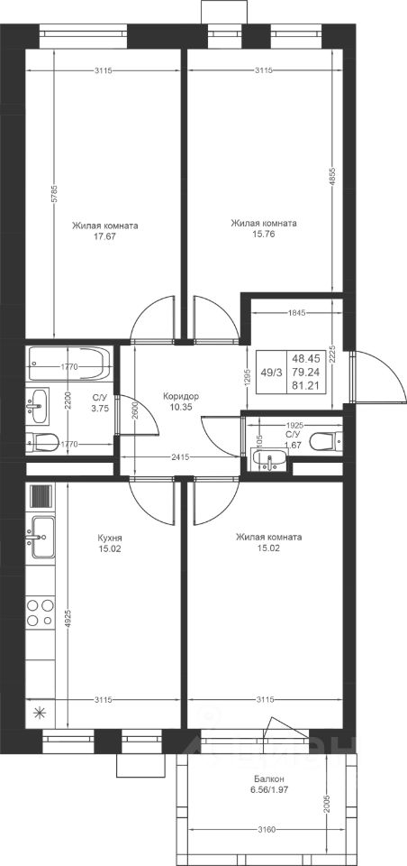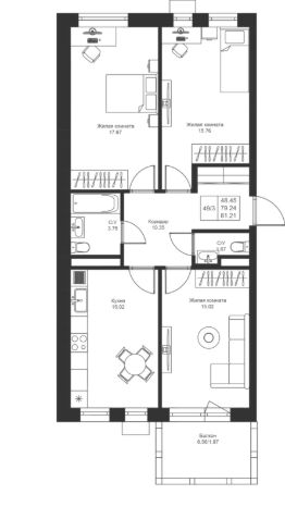 Продается 3-комнатная квартира 49 площадью 81,21 кв.м на 4 этаже в строящемся доме проекта "Новый свет" компании "Ак Барс Дом".