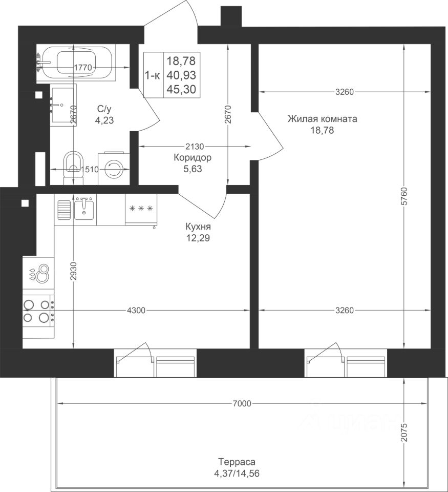 Уютная 1-комнатная квартира с отдельной кухней и выходом на балкон. Здесь можно организовать рабочее место или дополнительное пространство для отдыха.
