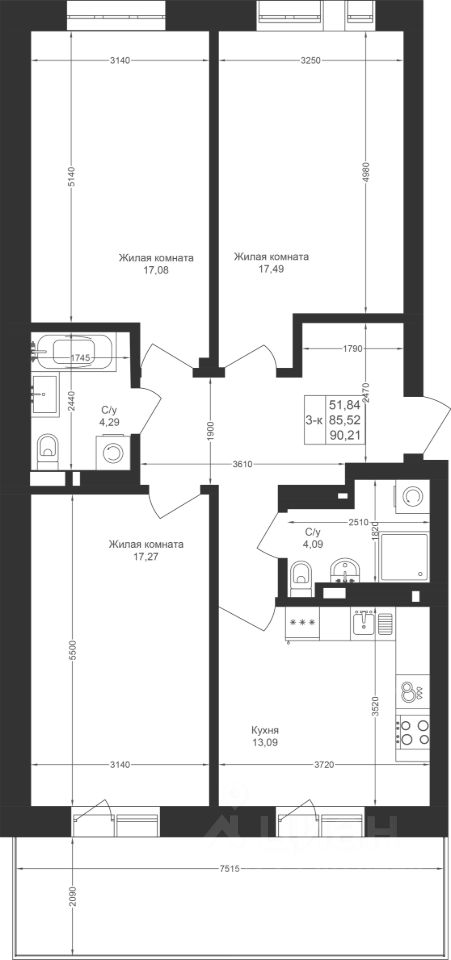 Комфортная 3-комнатная квартира с отдельной кухней и двумя санузлами. В квартире есть просторный балкон, где вы сможете организовать уютное место для отдыха.