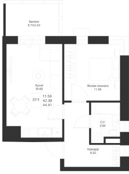 Продается 1-комнатная квартира 37 площадью 44,41 кв.м на 2 этаже в строящемся доме проекта "Новый свет" компании "Ак Барс Дом".