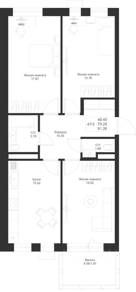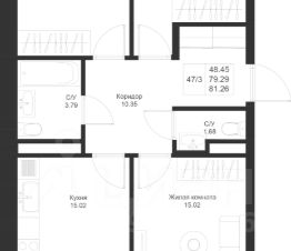 Продается 3-комнатная квартира 47 площадью 81,26 кв.м на 4 этаже в строящемся доме проекта "Новый свет" компании "Ак Барс Дом".