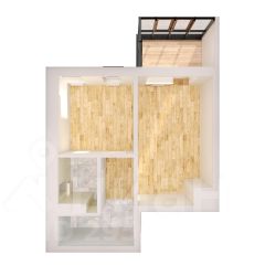 Площадь комнаты позволяет зонировать ее на спальную и гостевую зоны. В проекте функциональная прихожая, чтобы вам было удобно хранить свои вещи.