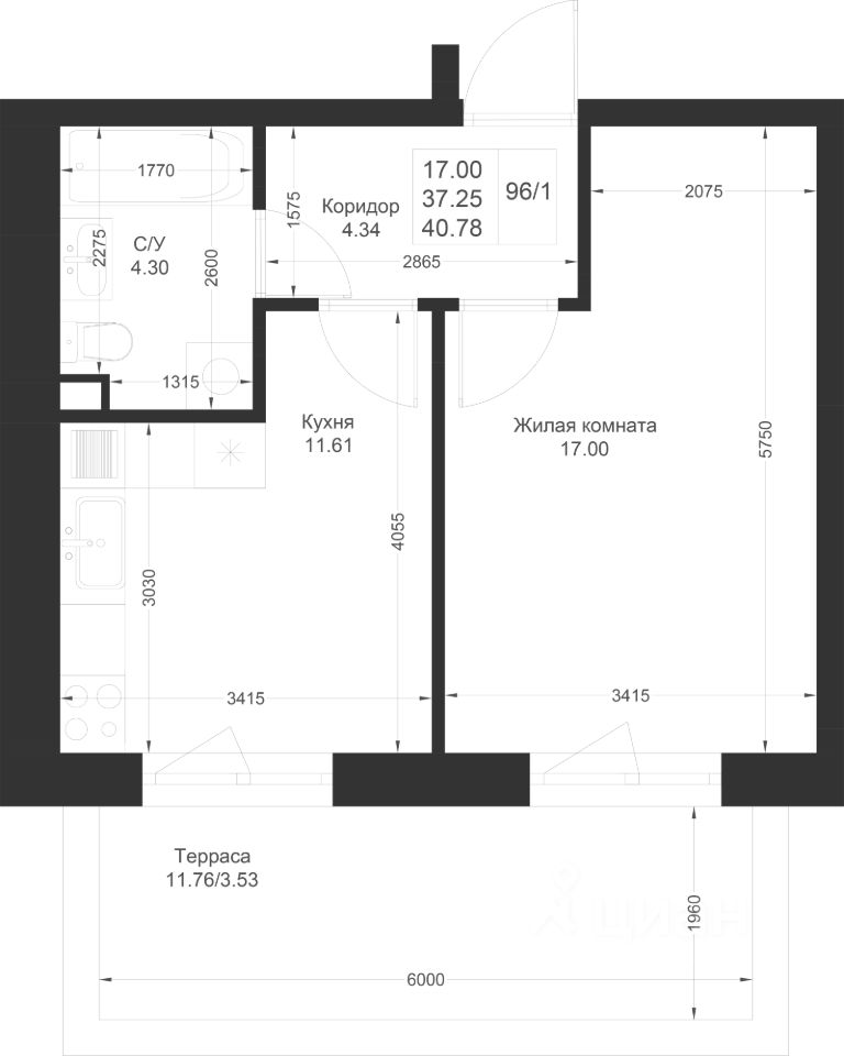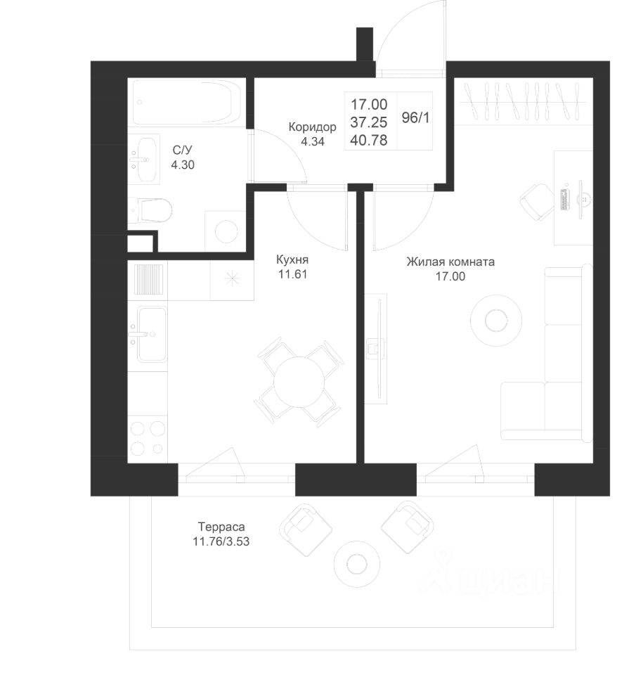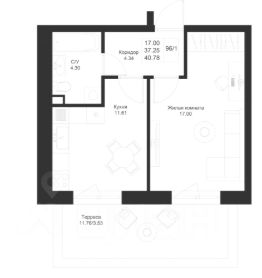Продается 1-комнатная квартира 96 площадью 40,78 кв.м на 1 этаже в строящемся доме проекта "Новый свет" компании "Ак Барс Дом".