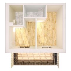 Площадь комнаты позволяет зонировать ее на спальную и гостевую зоны. В проекте функциональная прихожая, чтобы вам было удобно хранить свои вещи.