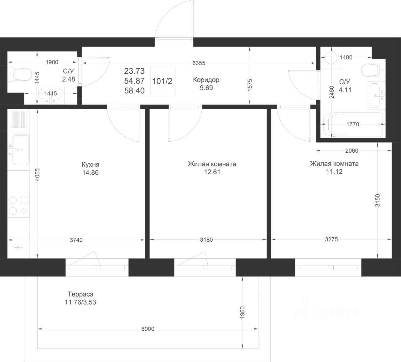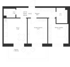 Продается 2-комнатная квартира 101 площадью 58,4 кв.м на 1 этаже в строящемся доме проекта "Новый свет" компании "Ак Барс Дом".