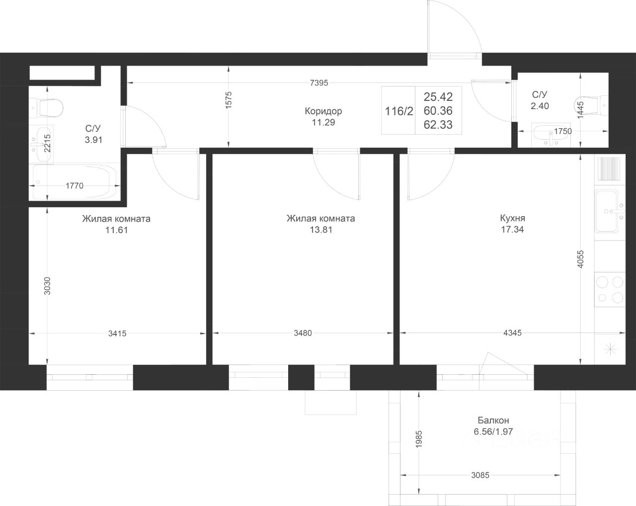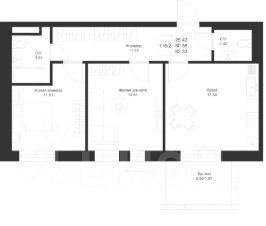 Продается 2-комнатная квартира 116 площадью 62,33 кв.м на 4 этаже в строящемся доме проекта "Новый свет" компании "Ак Барс Дом".