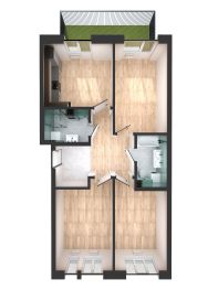 В проекте 3 комнаты для личного пространства домочадцев. Окна выходят на разные стороны дома, благодаря чему в помещениях будет больше света. В прихожей есть место для шкафа-купе, где будет удобно хранить все свои вещи.
