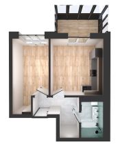 Площадь комнаты позволяет зонировать ее на спальную и гостевую зоны. В проекте функциональная прихожая, чтобы вам было удобно хранить свои вещи.