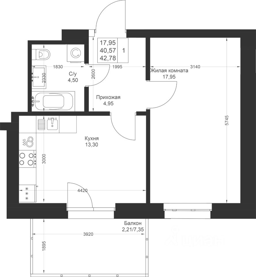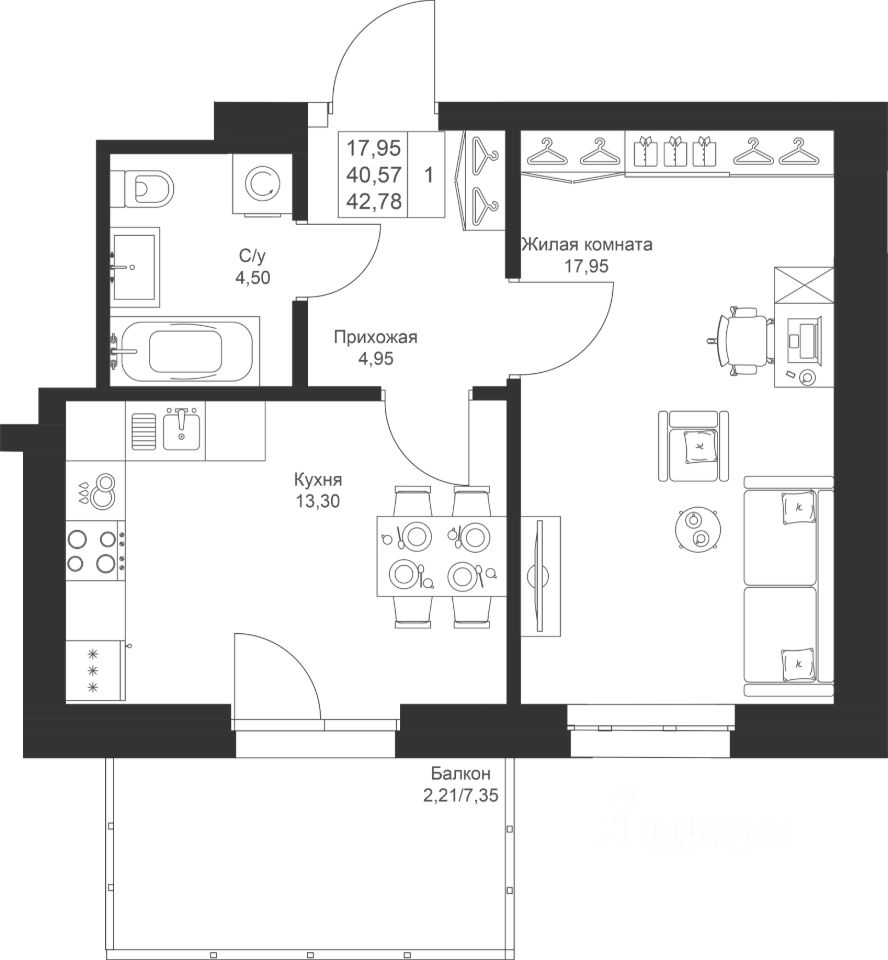 Уютная 1-комнатная квартира с отдельной кухней и выходом на балкон. Здесь можно организовать рабочее место или дополнительное пространство для отдыха.