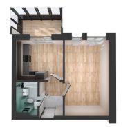Площадь комнаты позволяет зонировать ее на спальную и гостевую зоны. В проекте функциональная прихожая, чтобы вам было удобно хранить свои вещи.