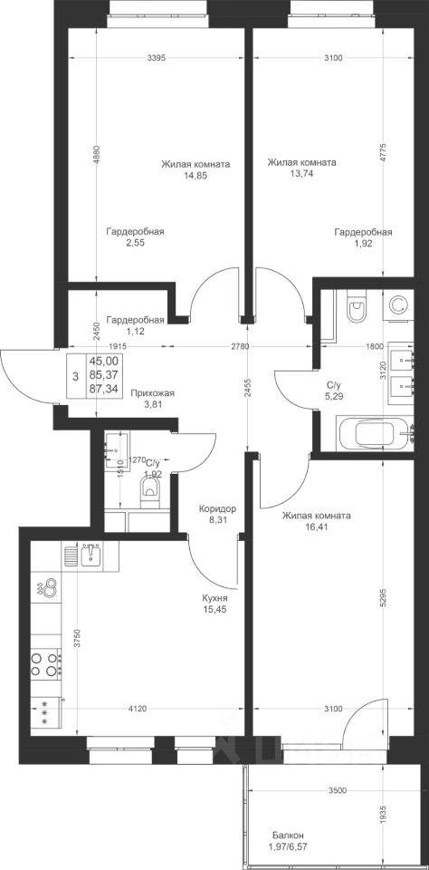 Комфортная 3-комнатная квартира с отдельной кухней и двумя санузлами. В квартире есть просторный балкон, где вы сможете организовать уютное место для отдыха.