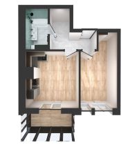 Площадь комнаты позволяет зонировать ее на спальную и гостевую зоны. В проекте функциональная прихожая, чтобы вам было удобно хранить свои вещи.