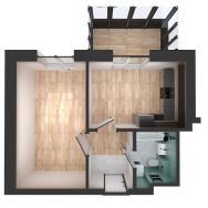 Площадь комнаты позволяет зонировать ее на спальную и гостевую зоны. В проекте функциональная прихожая, чтобы вам было удобно хранить свои вещи.