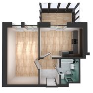 Площадь комнаты позволяет зонировать ее на спальную и гостевую зоны. В проекте функциональная прихожая, чтобы вам было удобно хранить свои вещи.