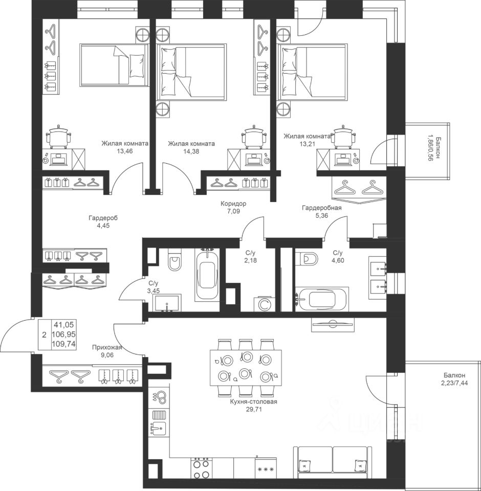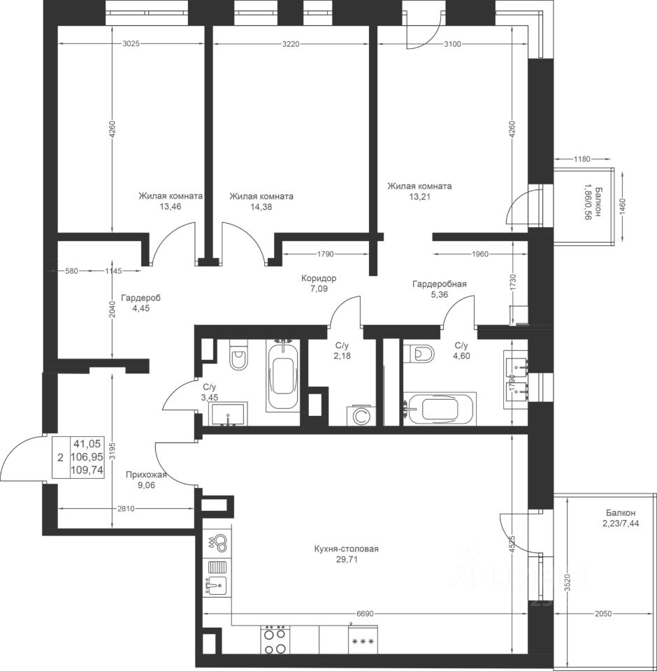 Продается 3 Евро-комнатная квартира 33 площадью 109,74 кв.м на 3 этаже в строящемся доме проекта "Новый свет" компании "Ак Барс Дом".