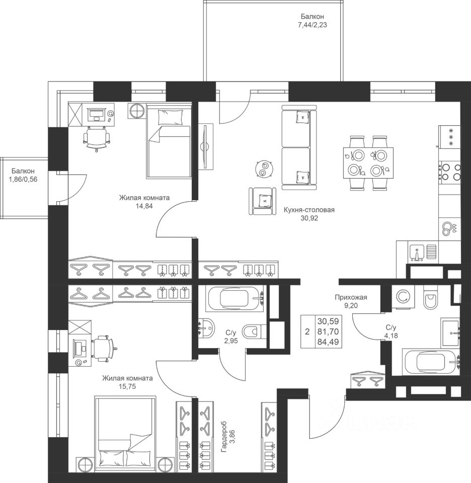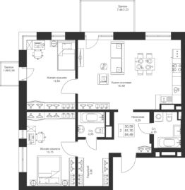 Продается 2 Евро-комнатная квартира 37 площадью 84,49 кв.м на 4 этаже в строящемся доме проекта "Новый свет" компании "Ак Барс Дом".