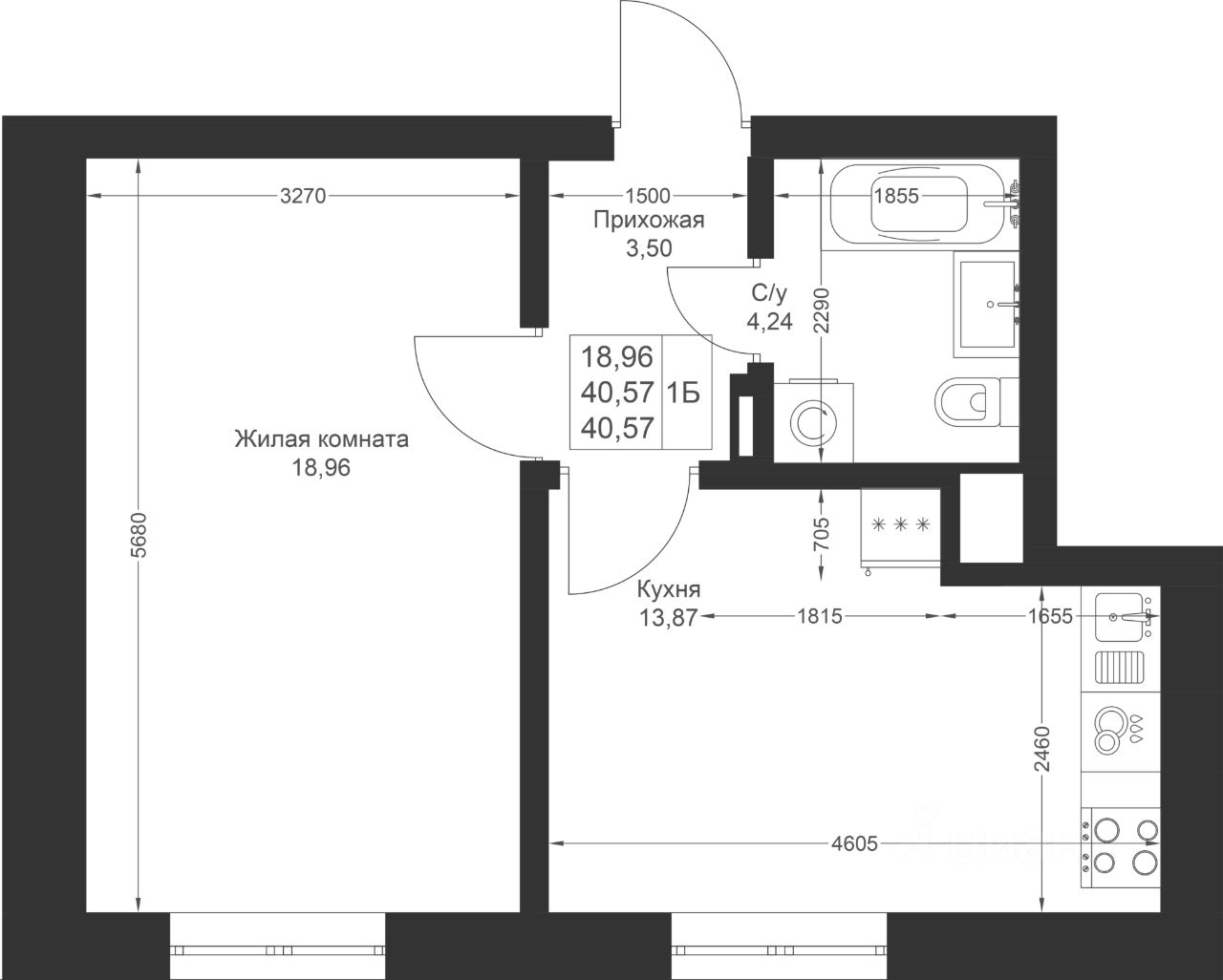 Продается 1-комнатная квартира 58 площадью 40,57 кв.м на 1 этаже в строящемся доме проекта "Новый свет" компании "Ак Барс Дом".