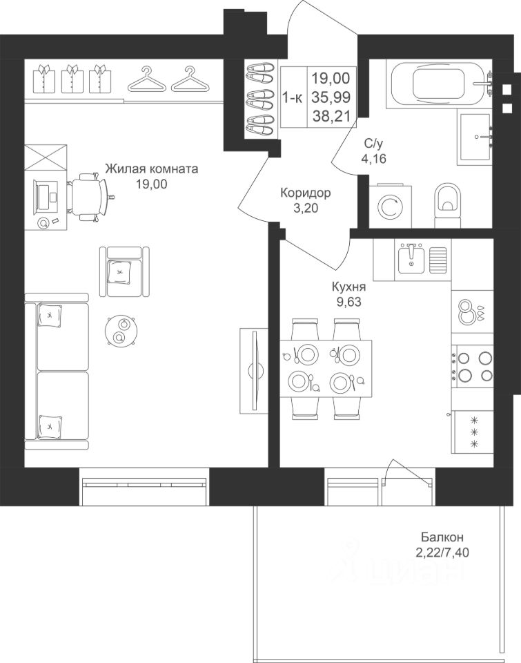 Уютная 1-комнатная квартира с отдельной кухней и выходом на балкон. Здесь можно организовать рабочее место или дополнительное пространство для отдыха.