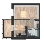 Площадь комнаты позволяет зонировать ее на спальную и гостевую зоны. В проекте функциональная прихожая, чтобы вам было удобно хранить свои вещи.